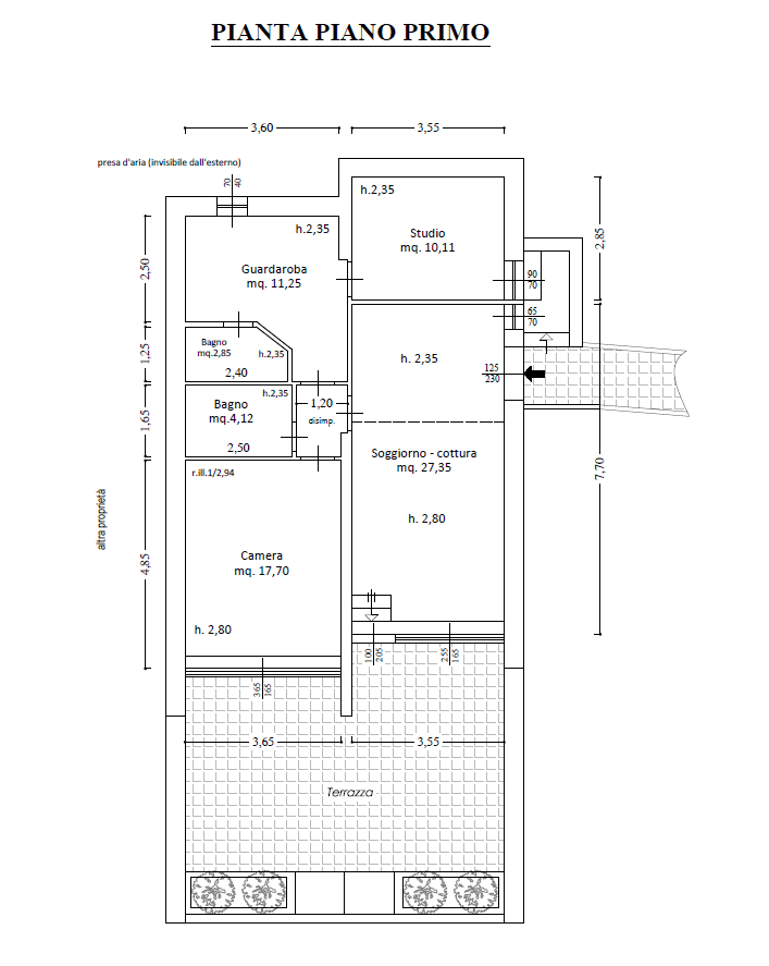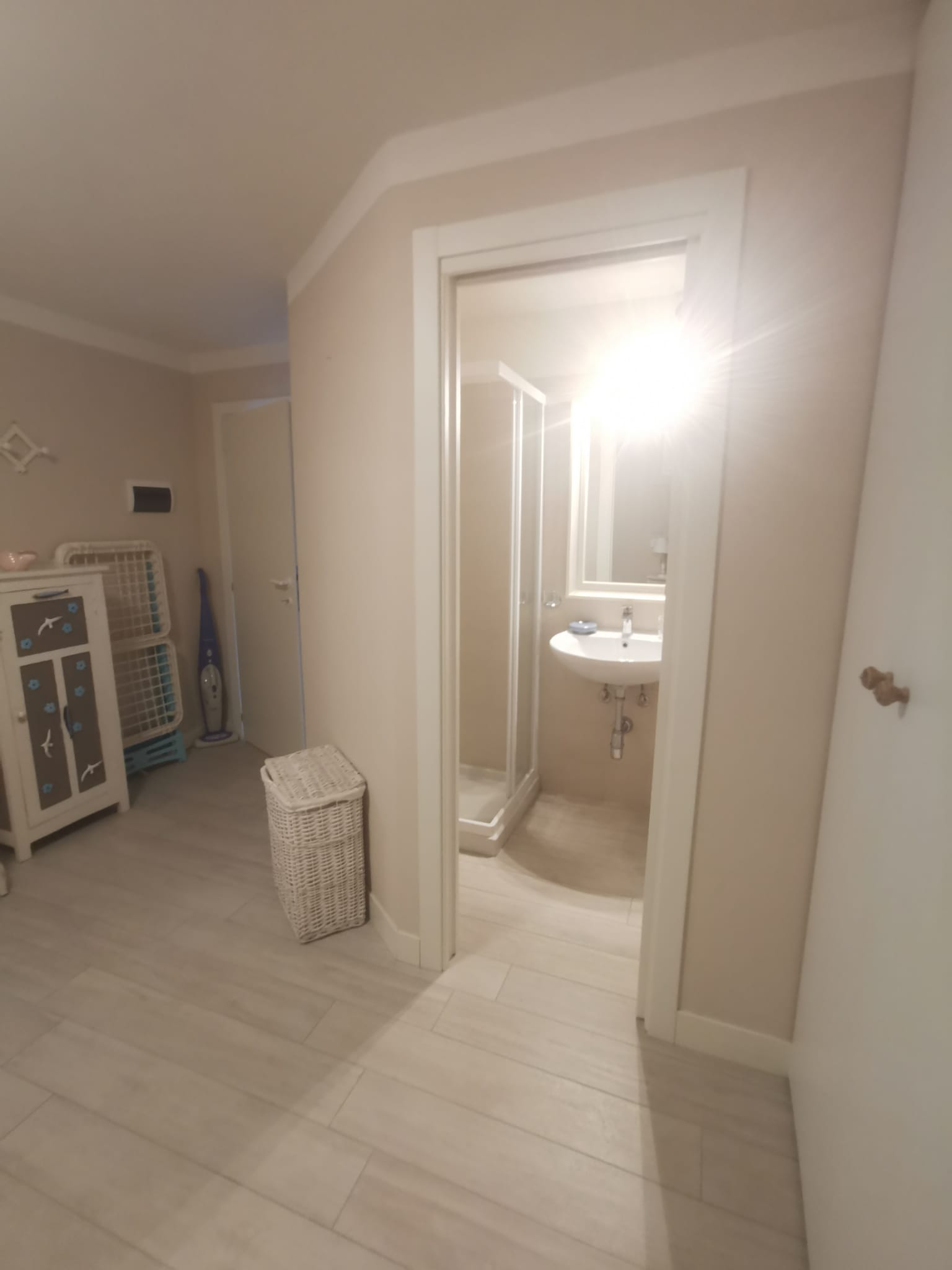Composto da: zona giorno con angolo cottura e grande terrazza, disimpegno notte, camera matrimoniale con apertura sul grande terrazzo, studio e guardaroba, 2 bagni.