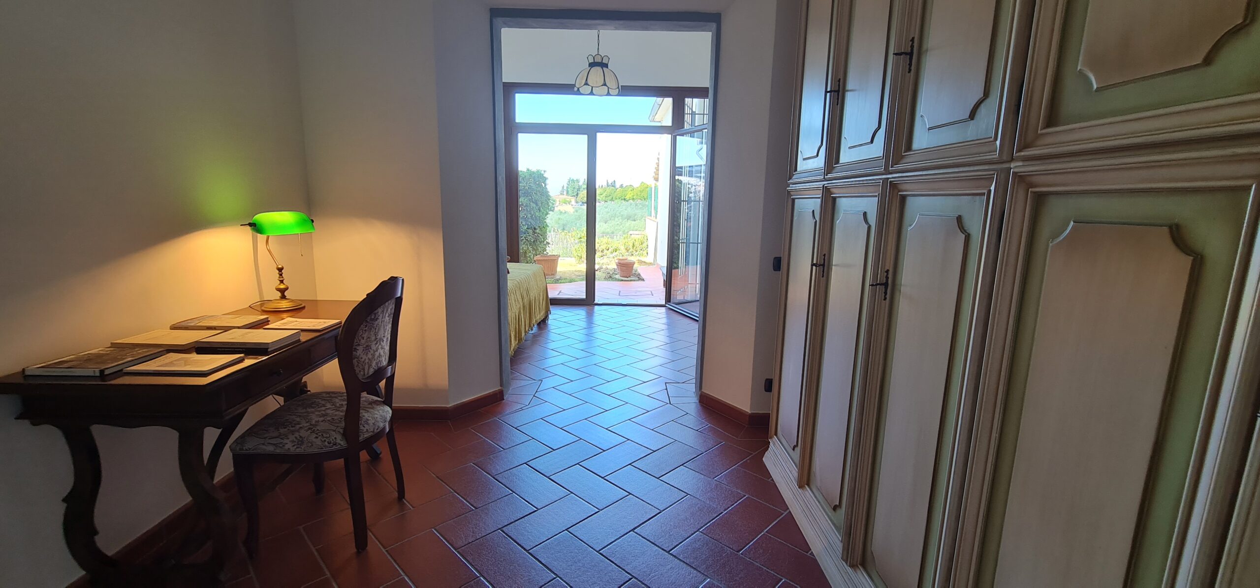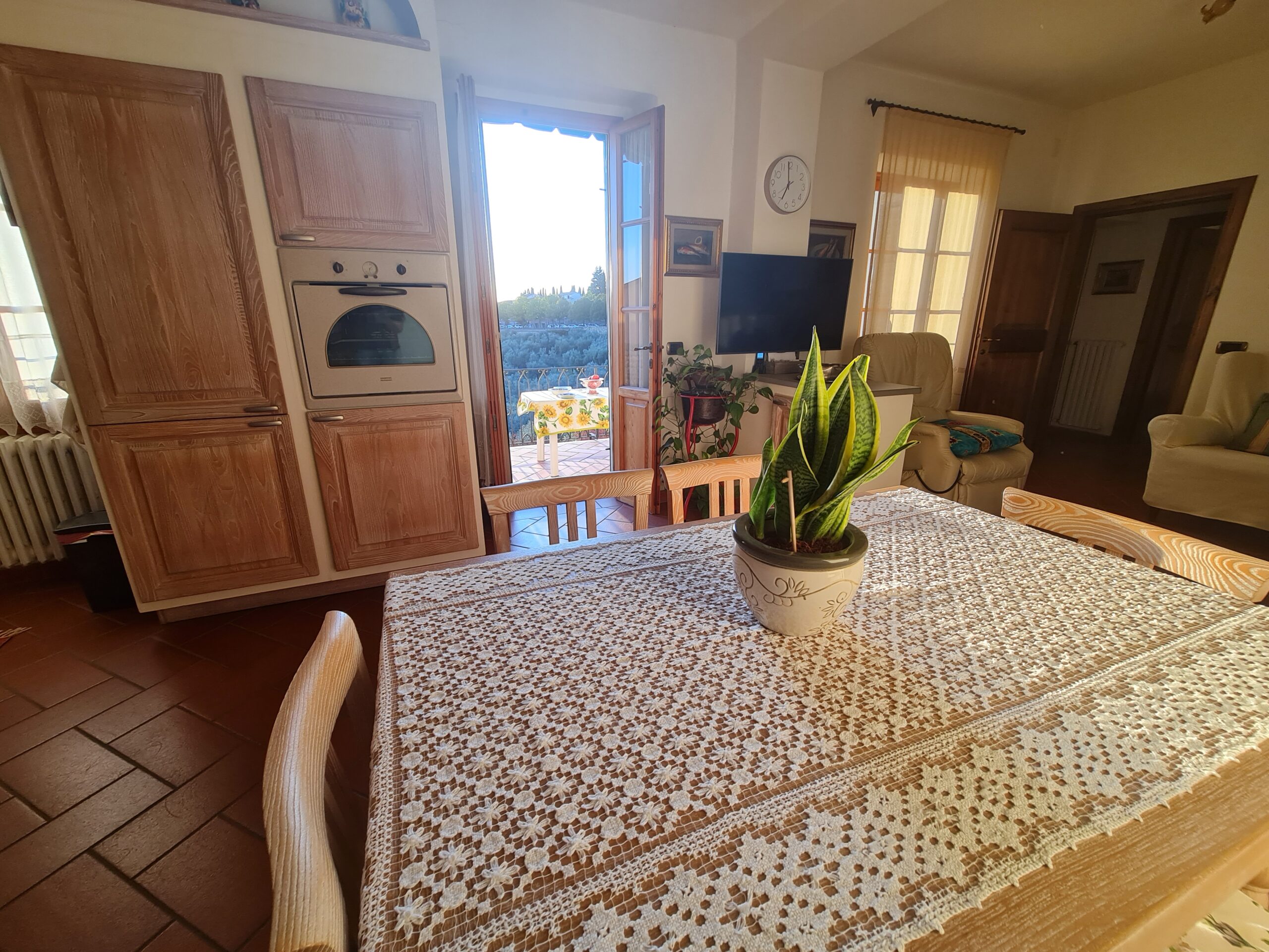 Ci troviamo in zona centrale di San Casciano val di Pesa, ottimamente servita da negozi, uffici, e quant’altro necessario alla vita quotidiana. Allo stesso tempo però questa abitazione offre anche la pace e la tranquilla rilassatezza della campagna che si può ammirare dal proprio giardino pensile panoramico tergale e dalle due grandi terrazze che vi si affacciano. In particolare, la terrazza della zona giorno è fruibile direttamente dalla cucina-pranzo, e consente quindi pranzi e cene all’aperto sotto la tenda estensibile, nella privacy più completa, godendo dell’incantevole vista sulle colline circostanti. La posizione è davvero invidiabile, sia per le numerose attrattive che la vita in paese offre tutto l’anno, essendo San Casciano paese vivo ed animato, ricco di eventi; sia per vivere anche momenti di relax immersi nel verde, grazie agli ampi e inaspettati spazi esterni presenti in questa casa posti sul lato campagna, difficilmente trovabili in paese.
