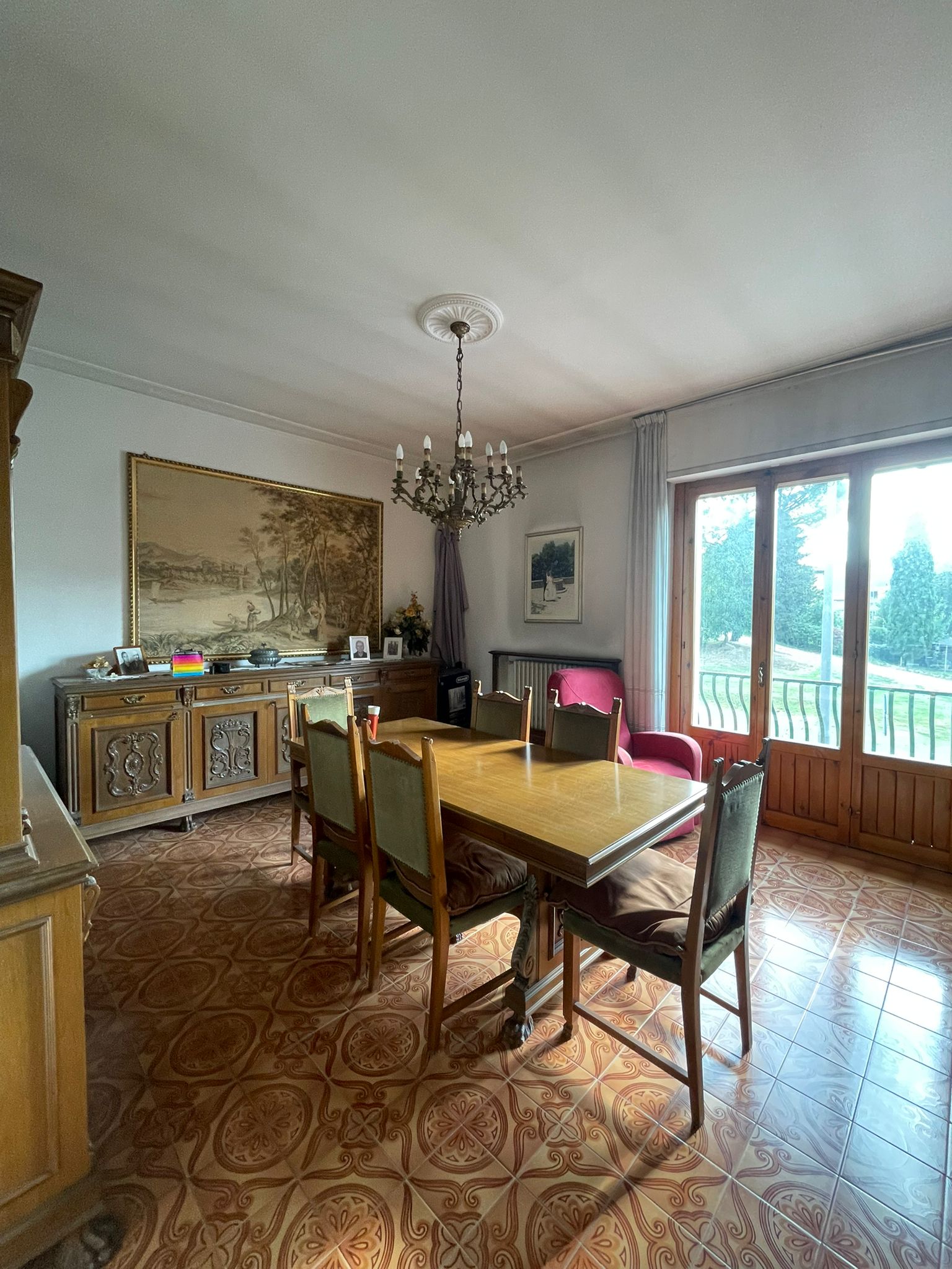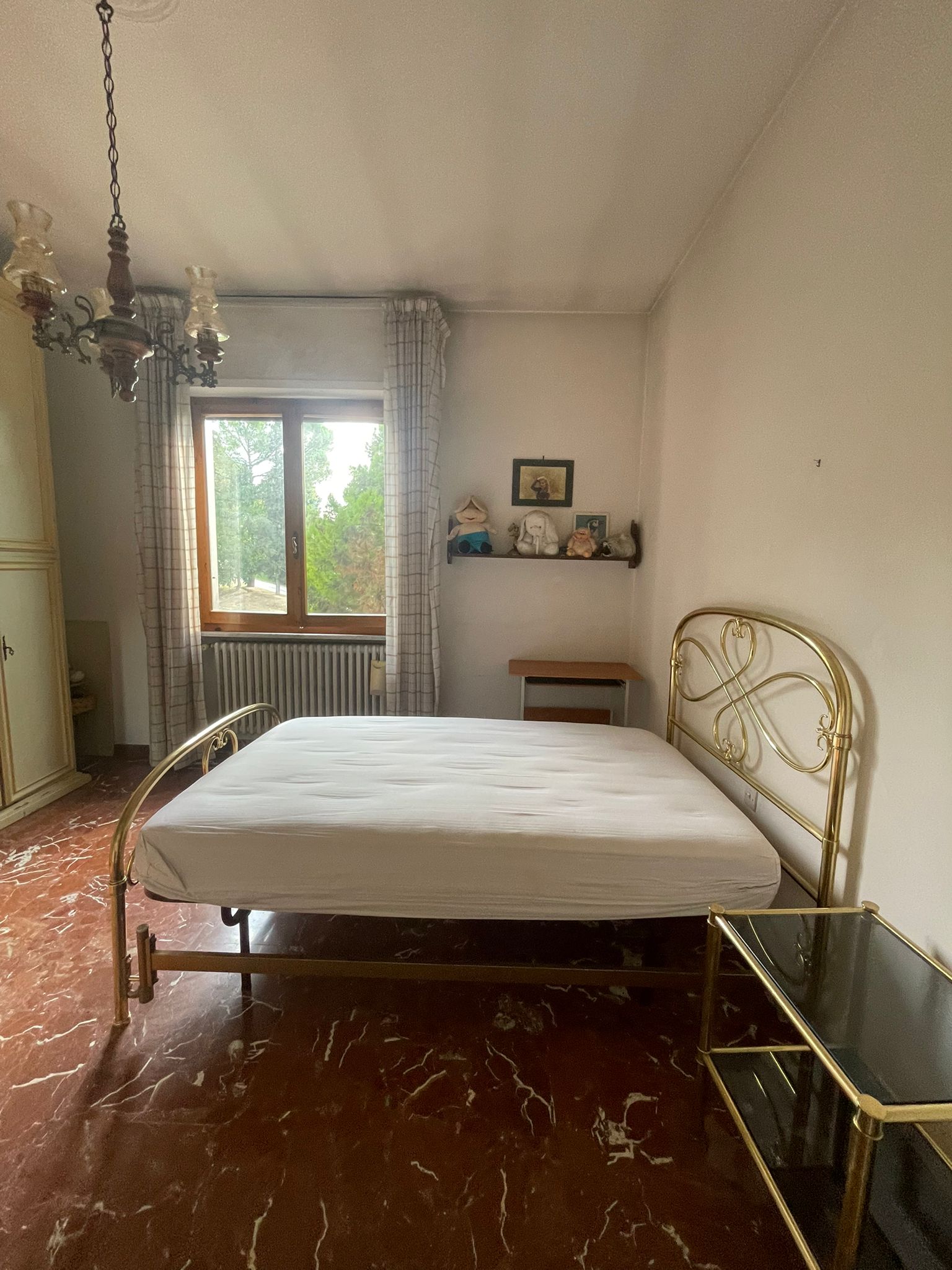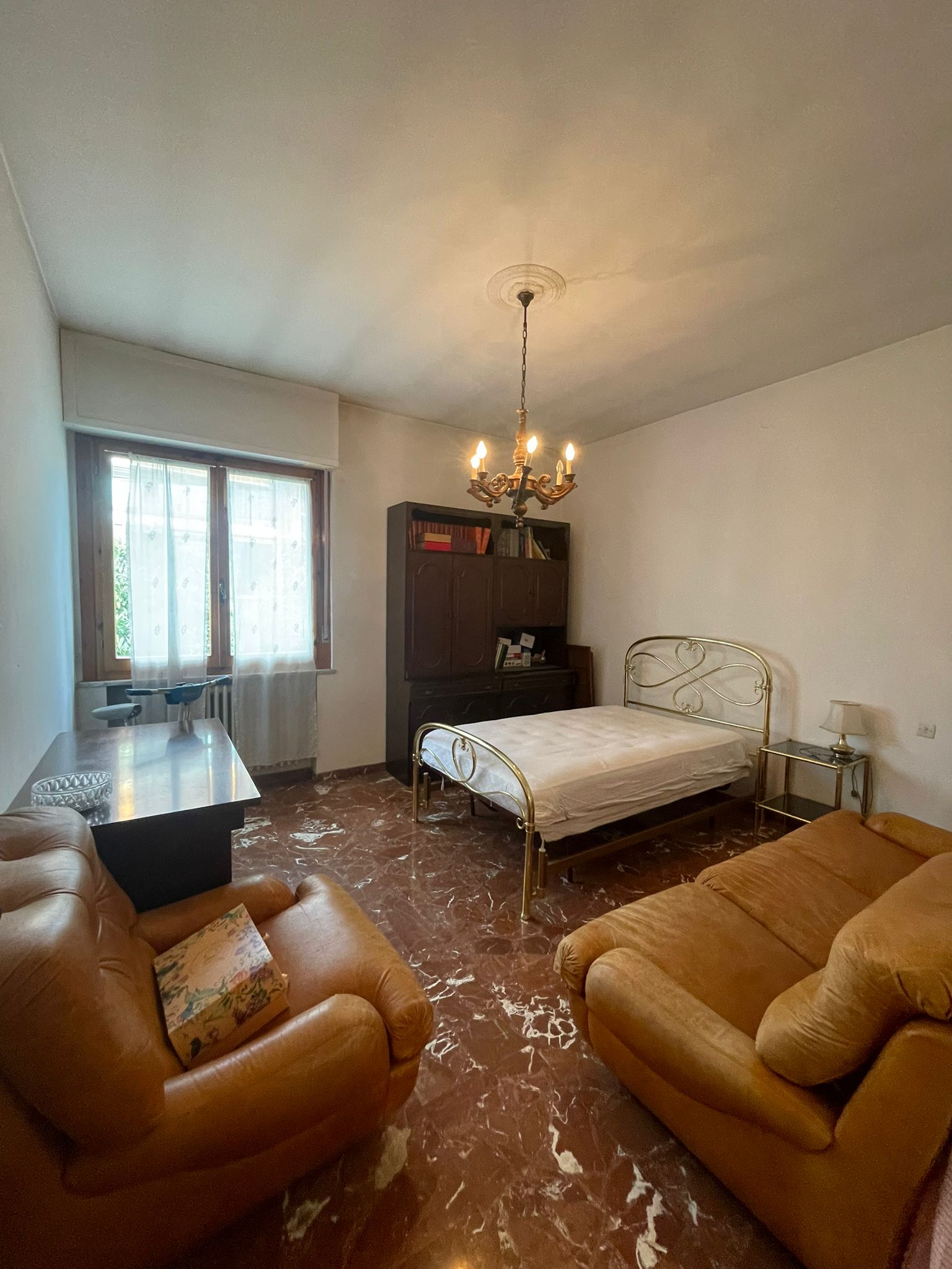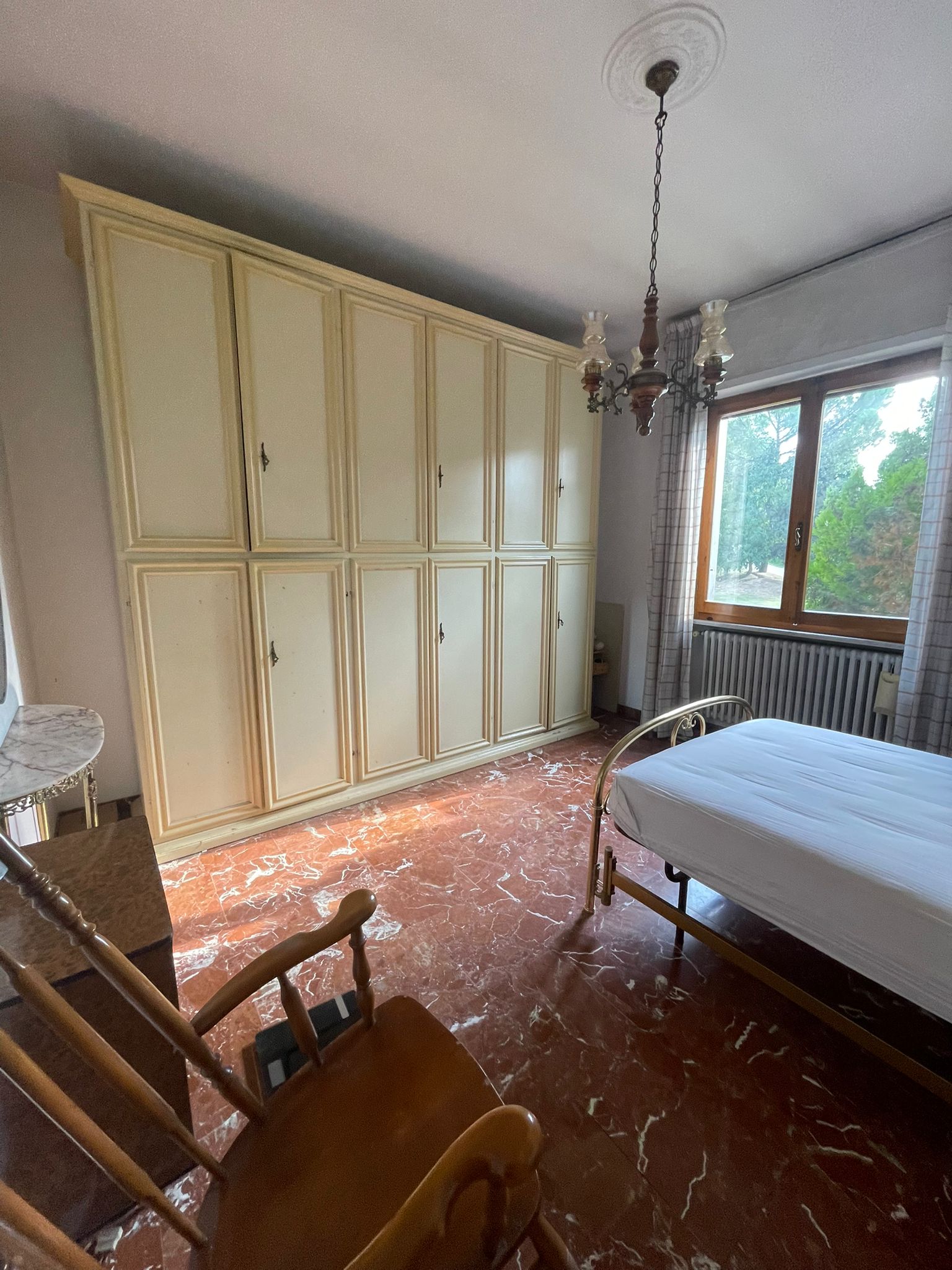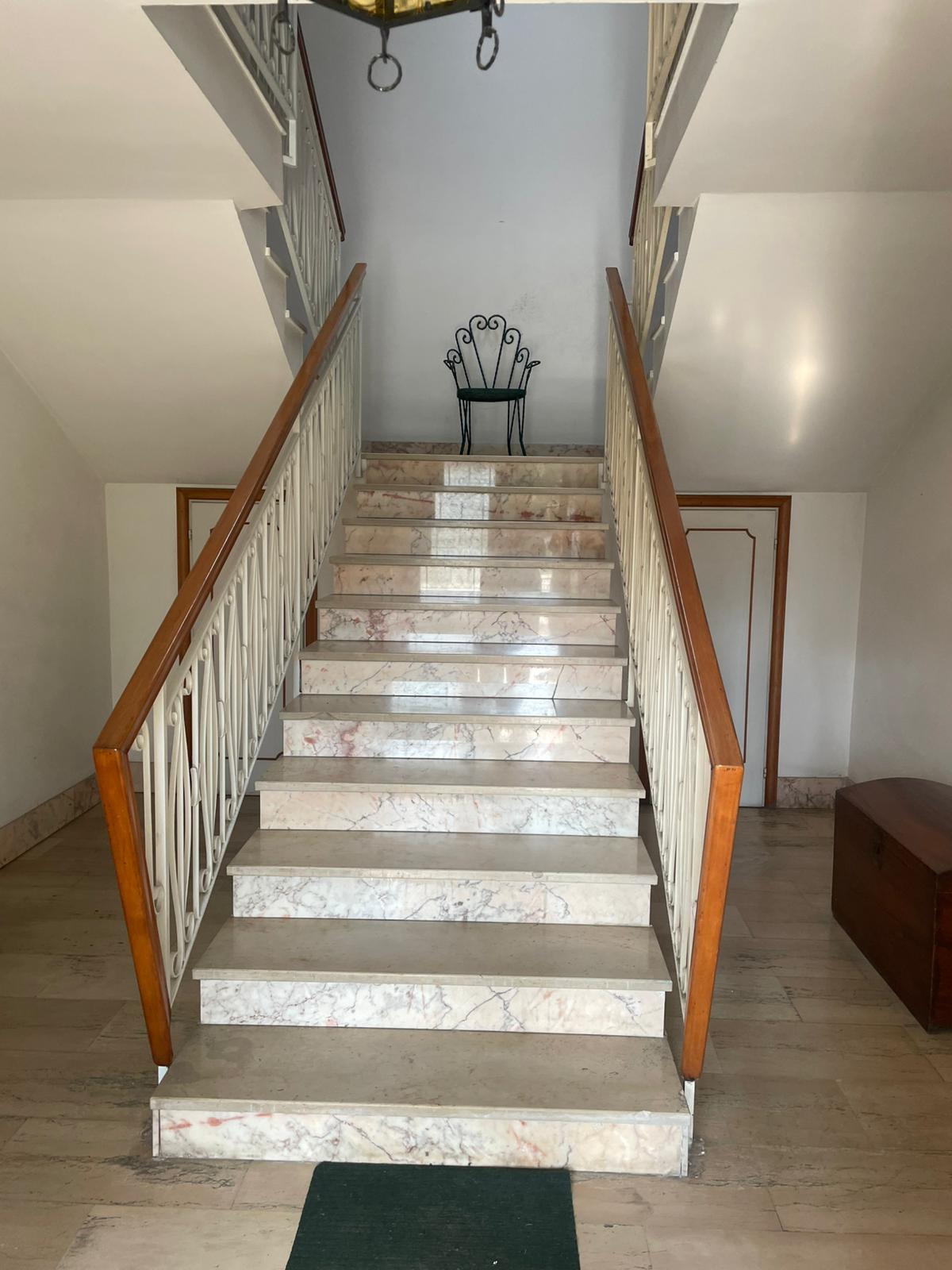 villetta cielo terra in edificio di contesto signorile e bifamiliare. Senza condominio. La proprietà che é immersa nel verde, ma allo stesso tempo a due passi dal centro, e da tutti i servizi cittadini, possiede tutte le caratteristiche che la rendono interessante sia per la location che per la tipologia costruttiva. L’abitazione di mq.142 si sviluppa al piano primo ed é costituita da: ampio salone soggiorno- pranzo, cucina, 4 camere, due bagni finestrati e ripostiglio sempre finestrato. Due terrazze che si affacciano sul bel giardino di mq.450 di proprietà esclusiva. Al piano terreno ampio spazio attualmente denominato deposito di mq.47 circa calpestabili, dotato di ampie finestre sul giardino ed avente anch’esso come l’appartamento un altezza di metri 3. Detto locale potrebbe essere utilizzato come studio per la propria attività in Poggibonsi, oppure può essere convertito in altra più piccola abitazione sottostante alla principale con accesso facilitato. Dal giardino si accede ad un loggiato di mq.90, sotto il quale possono trovare posto comodamente 4 auto al coperto. La costruzione é degli anni 70, in buone condizioni, da prevedere un parziale ammodernamento. Il riscaldamento é autonomo con caldaia a gas metano che si trova al piano terreno in un vano appositamente dedicato. I pavimenti dei vani principali sono in marmo pregiato e le finestre sono dotate di doppi vetri. Ottima soluzione per chi cerca ampi spazi abitativi ed accessori per la comodità di tutta la famiglia